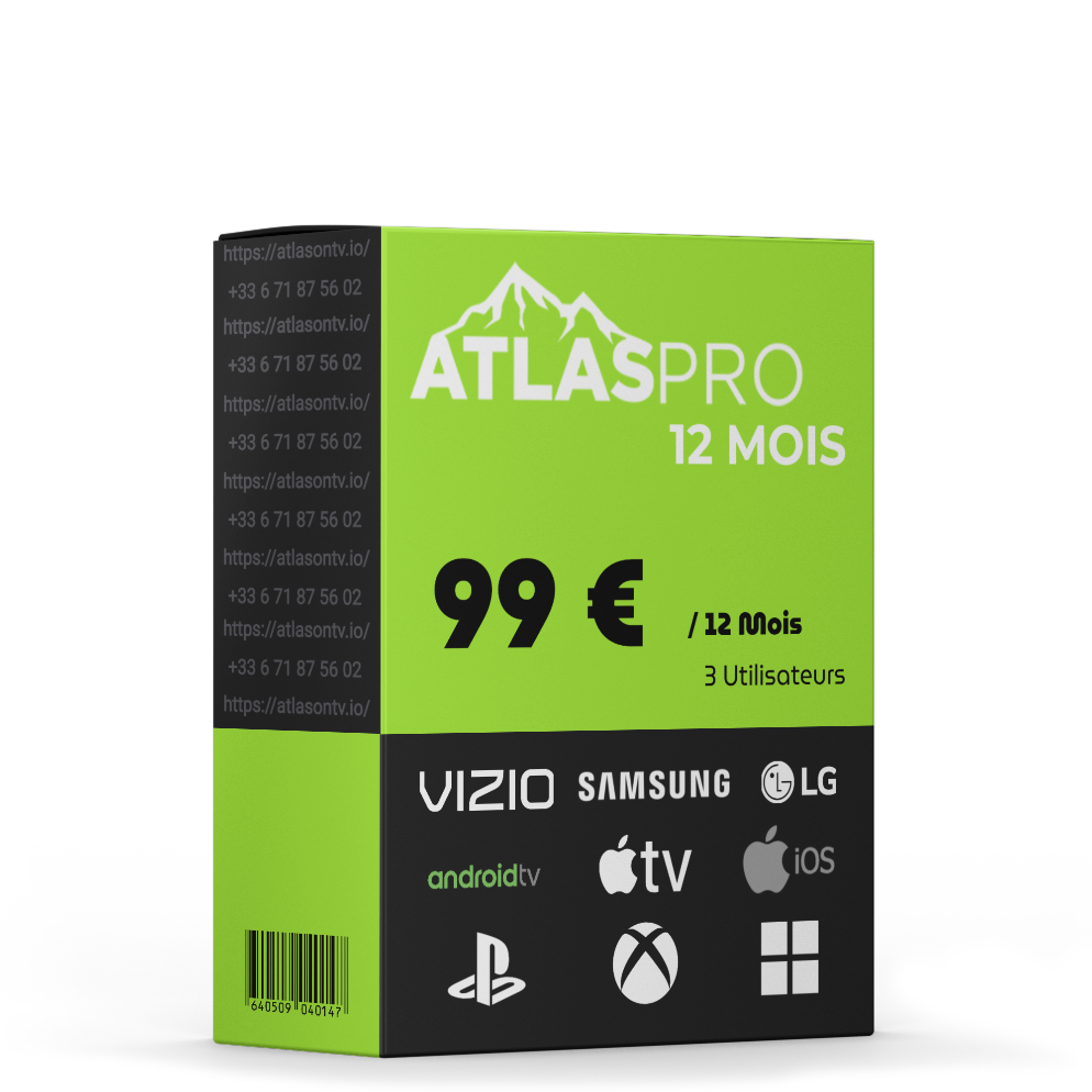Atlas Pro ONTV est un abonnement IPTV 12 mois conçu pour 3 utilisateurs est idéal pour les familles ou les foyers équipés de plusieurs écrans. Il offre une connexion rapide, stable et compatible avec tous vos appareils.